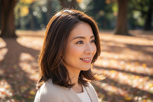 髪色もほんの少しトーンを落とすだけで、全体の印象がぐっと上品になります。 明るすぎた髪をやや落ち着かせたり、やわらかいブラウン系にするなど、ちょっとした変化で季節感が出ます。 白髪染めでも、「少しのトーン調整」で印象を変えられるので、無理なく楽しめます。季節の変わり目は髪のいたわりも忘れずに
